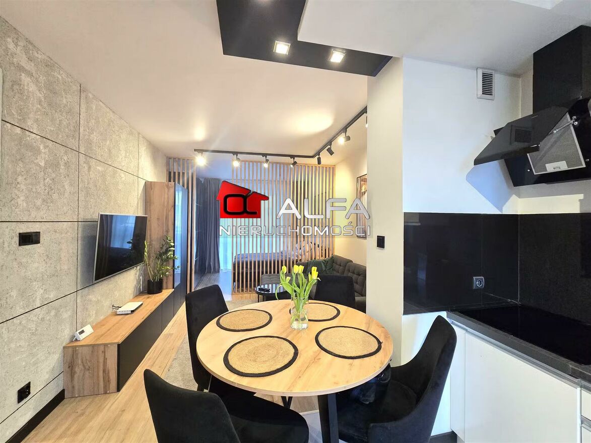 Na wyposażeniu mieszkania pozostaje umeblowana i wyposażona w sprzęt AGD kuchnia oraz szafy w pokojach i w przedpokoju.